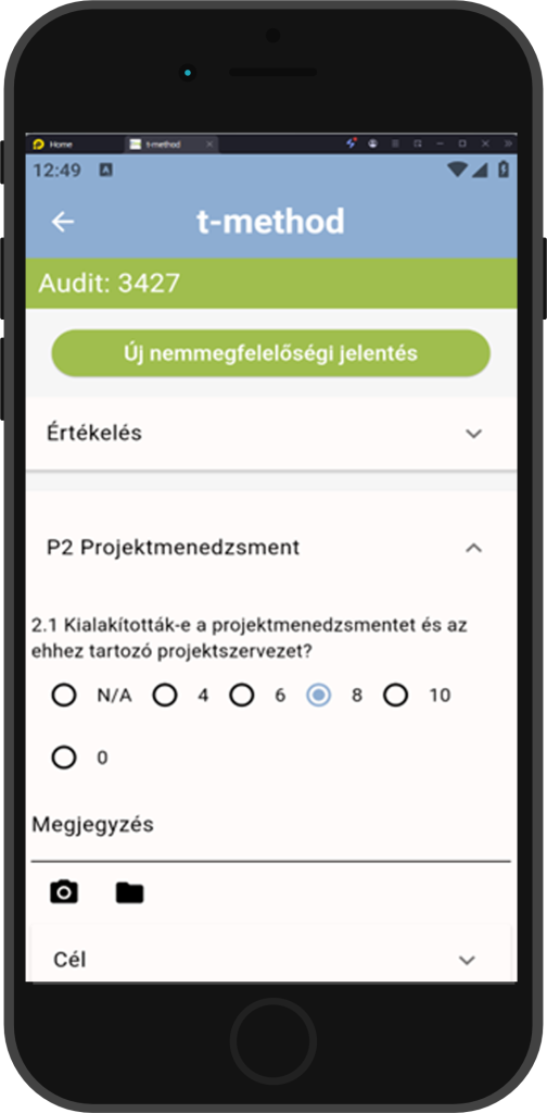 The audit record is automatically generated as the audit progresses. Question lists can be easily evaluated directly in the interface or via a mobile application. We can add comments to observations and attach photos or files as evidence.