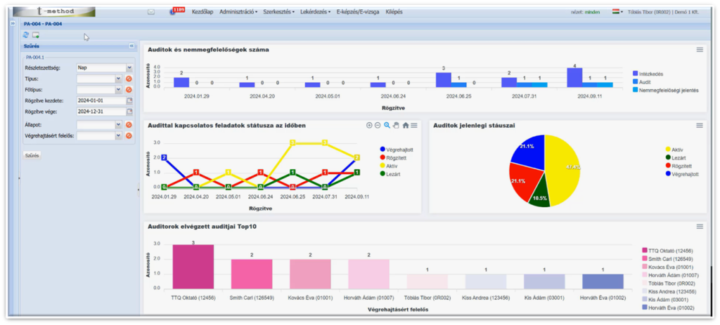 We can query the status of audited processes, products, or track auditors’ progress. We can monitor how the status of audits and their related tasks evolve. Dashboards can be created to enable deeper analysis and support continuous improvement.